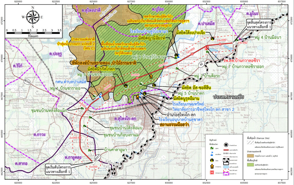 - จังหวัดนราธิวาส ประชุมชี้แจงเหตุผลและความจำเป็นในการปรับแนวเส้นทางของโครงการสำรวจและออกแบบทางหลวง 4 ช่องจราจรทางเลี่ยงเมืองสุไหงโกลก