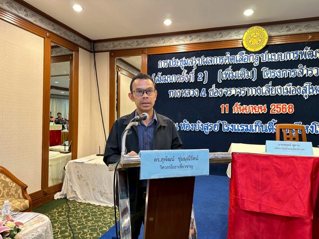 โครงการสำรวจและออกแบบ ทางหลวง 4 ช่องจราจร ทางเลี่ยงเมืองสุไหงโก-ลก การประชุมสรุปผลการคัดเลือกรูปแบบการพัฒนาโครงการ (สัมมนา ครั้งที่ 2) (เพิ่มเติม) วันพฤหัสบดีที่ 11 กันยายน 2568 เวลา 09.00-12.00 น. ณห้องประชุมโรงแรมเก็นติ้ง ตำบลสุไหงโก-ลก อำเภอสุไหงโก-ลก จังหวัดนราธิวาส